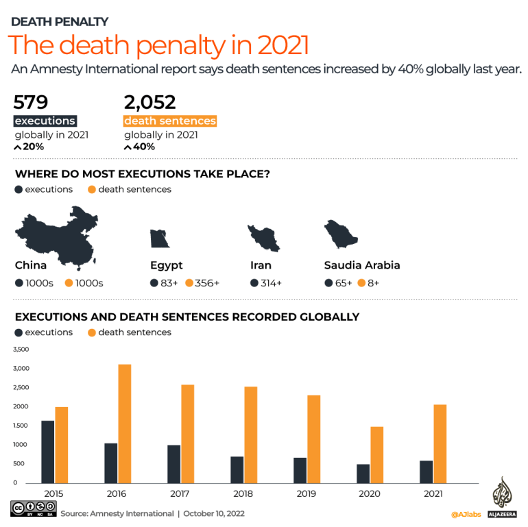 The number of executions in the U.S. has declined significantly since peaking at 98 in 1998. The drop has coincided with declining support, falling from a high of 80% in 1994 to 54% in 2021, according to Gallup polls. Since the mid-1990s, opposition has risen from under 20% to around 45%.